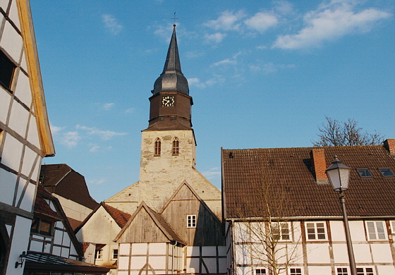 der untere Teil erhalten und Bestandteil des heutigen Kirchturms.