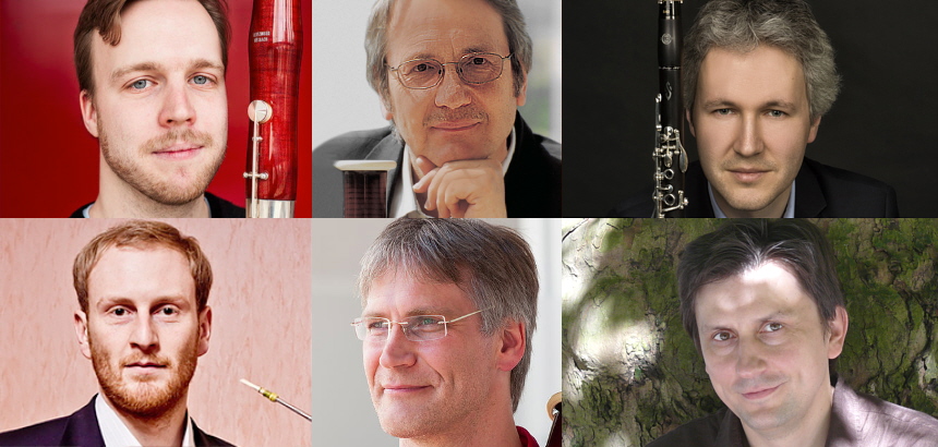 | 20:00 h Teil 1 (im Wappensaal) Fagottverrückt, holen die vier Leitzinger Bassoonisten schon als Solofagottisten ihrer Orchester – Petersen beim Gewandhausorchester Leipzig, Schulz ist dort Akademist, Naumov bei der Musikalischen Komödie an der Oper Leipzig, Ventulett war im Frankfurter Opern- und Museumsorchester – alles aus ihren Fagotten raus. Noch doller aber treiben sie’s zu viert, wenn sie groß besetzte Stücke der Klassik für sich arrangieren (lassen) oder zeitgenössische Stücke adaptieren. Im Fagottquartett hat wie im Streichquartett jede einzelne Stimme Soloqualität, und jeder spielt, so dass man keine Lage vermisst, den Charakter seines Lieblingsinstruments voll aus: den unvergleichlichen reed-sound der beiden Blätter, kantable, geschmeidig-schmeichelnde Höhen oder ein sonores Grunzen in der Tiefe, das noch heimeliger wird im Kontrafagott eine Oktave darunter. Geheimnisvoll-mysteriöse Flächen aus Klang lässt das