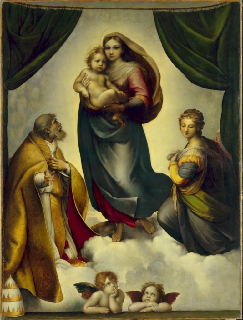 Raffaels „Sixtinische Madonna“ (1512/13) gehörte schon im 19. Jh. zu einem der meistreproduzierten Gemälde. Ursprünglich für den Hochaltar der Kirche San Sisto im italienischen Piacenza geschaffen, wurde das Bild im 18. Jahrhundert an den Dresdner Hof verkauft. In die Kirche stellte man eine Kopie.