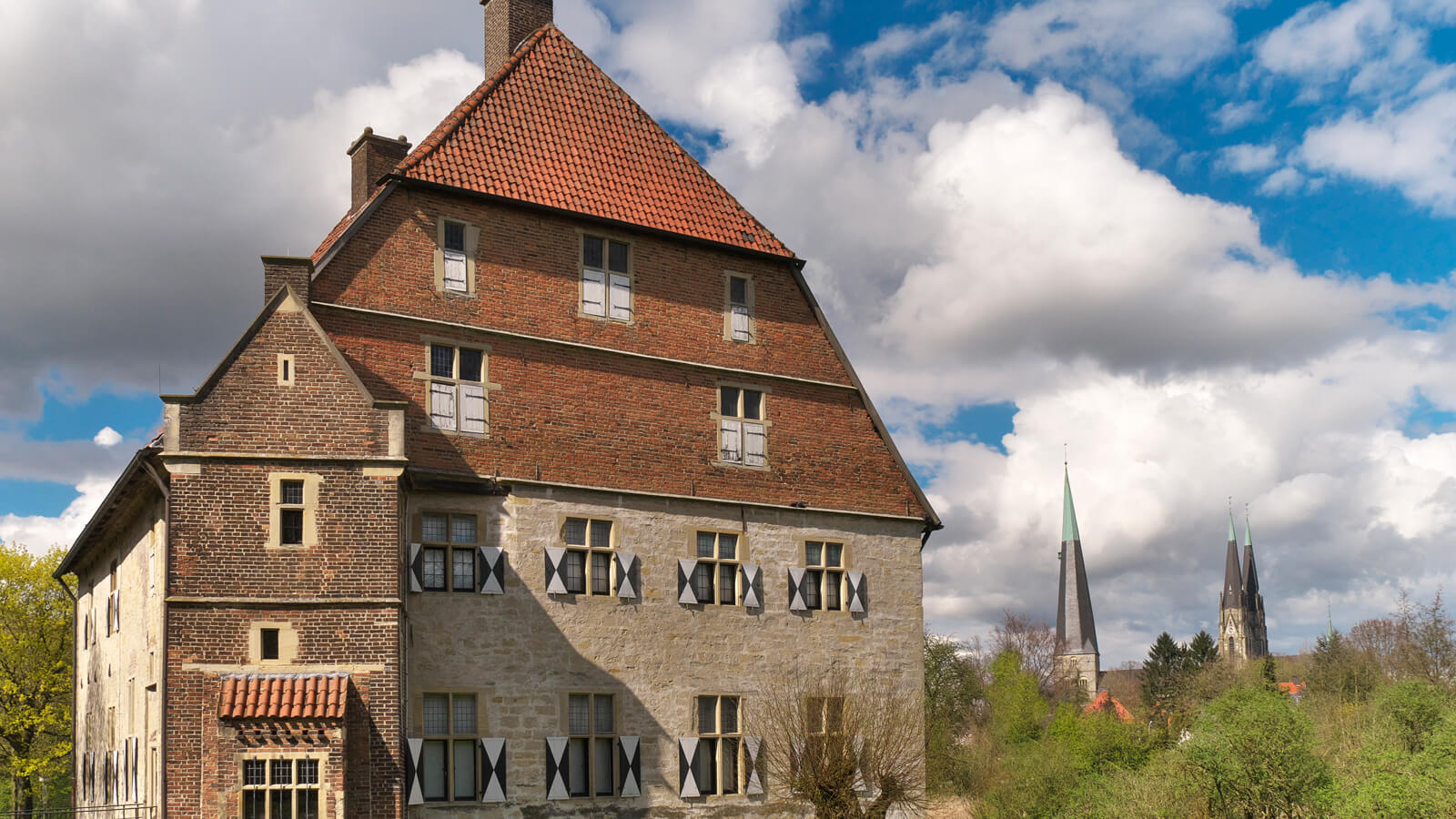 Die Kolvenburg, ein typischer Wohnsitz des niederen Adels aus dem 13. Jh., hat diverse Bauherren und Besitzer. Die Burg, die auf einem Hügel in der malerischen Berkelaue liegt, war von Gräben und Wällen umzogen, im Norden schützte sie der vermoorte Fluss. 1976 hatte der Kreis Coesfeld den Zustand der letzten Bauperiode Ende des 16. Jhs. wiederhergestellt, heute bespielt er die Kolvenburg mit Ausstellungen und Konzerten.