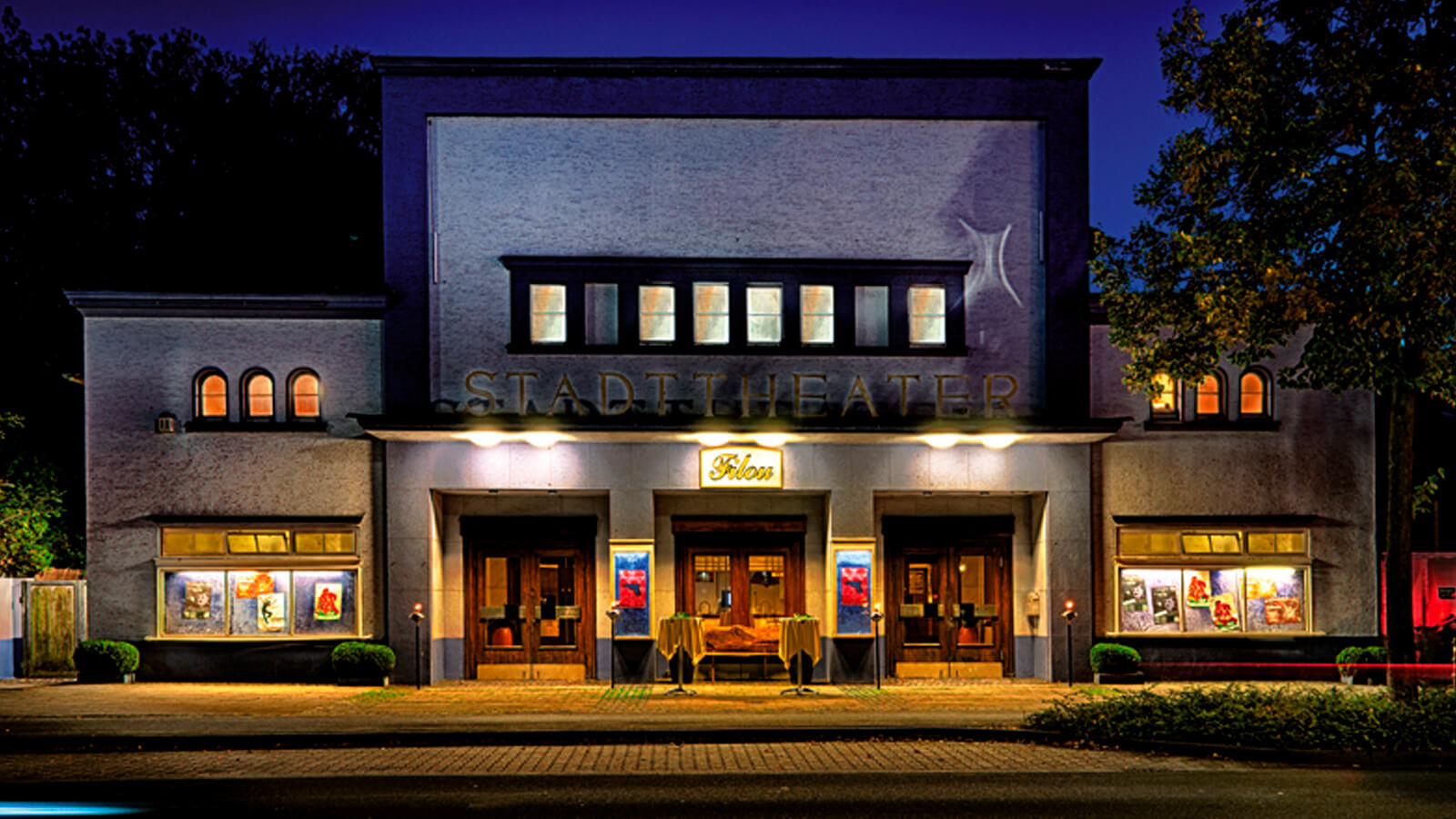 1901 eröffnete der Gastwirt, Hotelier und Brennereibesitzer Ferdinand Frölich einen Saalbau für Feste und Versammlungen mit bis zu 1.000 Personen. Von 1919-45 diente das Gebäude als Behelfskirche, Möbellager und -verkaufsraum, Getreide- und Waffenlager. Ab 1947 renoviert, wurde es 1949 als „prachtvoller Theaterbau“ wiedereröffnet und war bis 1955 kultureller Mittelpunkt des Kreises Beckum. Mit Eröffnung des Burgtheaters geriet das Stadttheater ins Abseits, wurde ver-baut und verkam nach und nach zum Pornokino. Schüler, die einen Veranstaltungsort brauchten, restaurierten 1983 das vollkommen verwahrloste Haus und gründeten in der Folge den Kulturinitiative Filou e.V., der das Stadttheater heute mit Eigenproduktionen und Gastveranstaltungen erfolgreich bespielt.